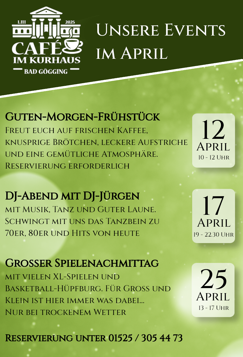 Hier findet ihr unser aktuelles Programm für die kommenden Wochen. Schaut vorbei, genießt einen besonderen Nachmittag und lasst euch von unseren Künstlern begeistern!